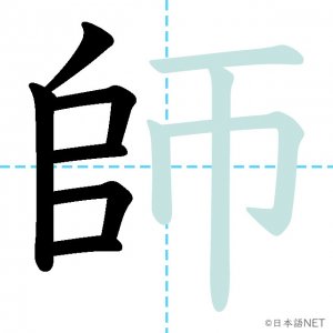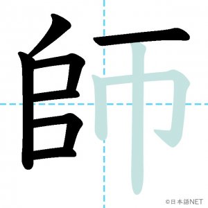 N3 漢字漢字【JLPT N3漢字】「師」の意味・読み方・書き順 2020年12月10日 2020年12月10日 Facebook postはてブLINEPocketFeedlyfa-exclamation-triangle記事内に商品プロモーションが含まれる場合があります目次1 「師」の漢字について2 「師」の書き順3 「師」を含む言葉4 関連書籍「師」の漢字について読み方音読みし訓読み-意味master / expert部首巾画数10JLPTレベルN3 「師」の書き順1画目2画目3画目4画目5画目6画目7画目8画目9画目10画目「師」を含む言葉教師(きょうし)医師(いし)技師(ぎし)講師(こうし)庭師(にわし)漁師(りょうし)牧師(ぼくし)師匠(ししょう)師走(しわす)関連書籍 新完全マスター漢字 日本語能力試験N3 Amazon 楽天市場 Yahooショッピング 日本語総まとめ N3 漢字 (「日本語能力試験」対策) Nihongo Soumatome N3 Kanji Kindle Amazon 楽天市場 Yahooショッピング 日本語を学ぶ外国人のための これで覚える! 漢字字典2500ナツメ社 Amazon 楽天市場 Yahooショッピング Facebook postはてブLINEPocketFeedly