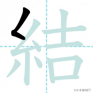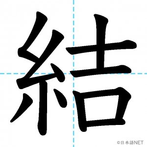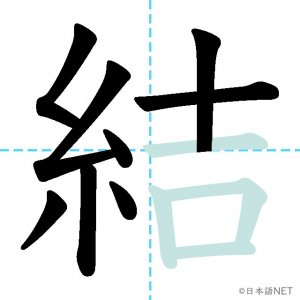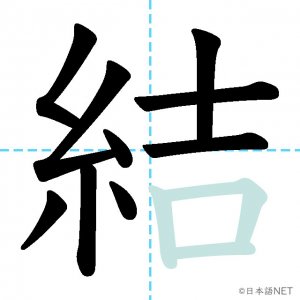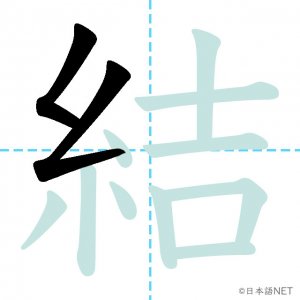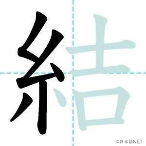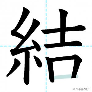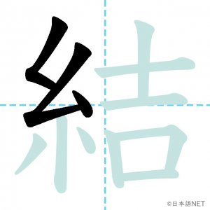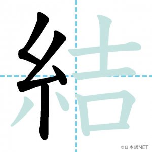 N3 漢字漢字【JLPT N3漢字】「結」の意味・読み方・書き順 2020年12月12日 2020年12月12日 Facebook postはてブLINEPocketFeedlyfa-exclamation-triangle記事内に商品プロモーションが含まれる場合があります目次1 「結」の漢字について2 「結」の書き順3 「結」を含む言葉4 関連書籍「結」の漢字について読み方音読みけつ訓読みむす-ぶ ゆ-う ゆ-わえる意味to tie / to bind部首糸画数12JLPTレベルN3 「結」の書き順1画目2画目3画目4画目5画目6画目7画目8画目9画目10画目11画目12画目「結」を含む言葉結ぶ(むすぶ)結婚(けっこん)結合(けつごう)結果(けっか)結び(むすび)完結(かんけつ)直結(ちょっけつ)団結(だんけつ)関連書籍 新完全マスター漢字 日本語能力試験N3 Amazon 楽天市場 Yahooショッピング 日本語総まとめ N3 漢字 (「日本語能力試験」対策) Nihongo Soumatome N3 Kanji Kindle Amazon 楽天市場 Yahooショッピング 日本語を学ぶ外国人のための これで覚える! 漢字字典2500ナツメ社 Amazon 楽天市場 Yahooショッピング Facebook postはてブLINEPocketFeedly