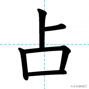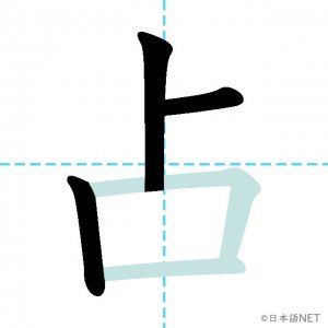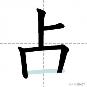 N2 漢字漢字【JLPT N2漢字】「占」の意味・読み方・書き順 2020年12月18日 2020年12月18日 Facebook postはてブLINEPocketFeedlyfa-exclamation-triangle記事内に商品プロモーションが含まれる場合があります目次1 「占」の漢字について2 「占」の書き順3 「占」を含む言葉4 関連書籍「占」の漢字について読み方音読みせん訓読みうらな-う し-める意味fortune telling / to occupy / to hold部首卜画数5JLPTレベルN2 「占」の書き順1画目2画目3画目4画目5画目「占」を含む言葉占い(うらない)占める(しめる)占領(せんりょう)占拠(せんきょ)独占(どくせん)占有(せんゆう)関連書籍 日本語総まとめ N2 漢字 [英語・ベトナム語版] Nihongo Soumatome N2 Kanji (English/Vietnamese Edition) Amazon 楽天市場 Yahooショッピング 新完全マスター漢字 日本語能力試験N2 Amazon 楽天市場 Yahooショッピング 日本語を学ぶ外国人のための これで覚える! 漢字字典2500ナツメ社 Amazon 楽天市場 Yahooショッピング Facebook postはてブLINEPocketFeedly