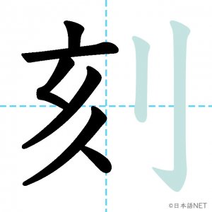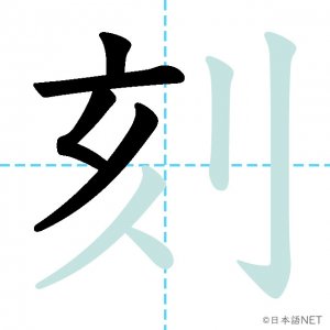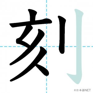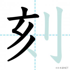 N2 漢字漢字【JLPT N2漢字】「刻」の意味・読み方・書き順 2020年12月26日 2020年12月26日 Facebook postはてブLINEPocketFeedlyfa-exclamation-triangle記事内に商品プロモーションが含まれる場合があります目次1 「刻」の漢字について2 「刻」の書き順3 「刻」を含む言葉4 関連書籍「刻」の漢字について読み方音読みこく訓読みきざ-む意味to cut fine / to engrave / to chop / time部首刀(刂)画数8JLPTレベルN2 「刻」の書き順1画目2画目3画目4画目5画目6画目7画目8画目「刻」を含む言葉時刻(じこく)遅刻(ちこく)深刻(しんこく)彫刻(ちょうこく)刻む(きざむ)刻限(こくげん)関連書籍 日本語総まとめ N2 漢字 [英語・ベトナム語版] Nihongo Soumatome N2 Kanji (English/Vietnamese Edition) Amazon 楽天市場 Yahooショッピング 新完全マスター漢字 日本語能力試験N2 Amazon 楽天市場 Yahooショッピング 日本語を学ぶ外国人のための これで覚える! 漢字字典2500ナツメ社 Amazon 楽天市場 Yahooショッピング Facebook postはてブLINEPocketFeedly