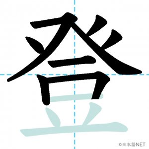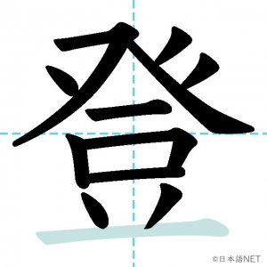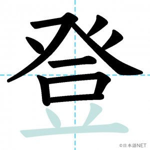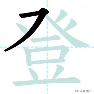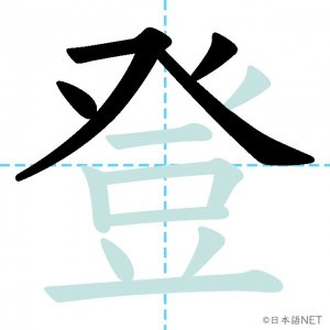 N3 漢字漢字【JLPT N3漢字】「登」の意味・読み方・書き順 2020年12月26日 2020年12月26日 Facebook postはてブLINEPocketFeedlyfa-exclamation-triangle記事内に商品プロモーションが含まれる場合があります目次1 「登」の漢字について2 「登」の書き順3 「登」を含む言葉4 関連書籍「登」の漢字について読み方音読みとう と訓読みのぼ-る意味to climb / to ascend部首癶画数12JLPTレベルN3 「登」の書き順1画目2画目3画目4画目5画目6画目7画目8画目9画目10画目11画目12画目「登」を含む言葉登る(のぼる)登山(とざん)登校(とうこう)登録(とうろく)登場(とうじょう)登頂(とうちょう)登用(とうよう)登壇(とうだん)登用(とうよう)関連書籍 新完全マスター漢字 日本語能力試験N3 Amazon 楽天市場 Yahooショッピング 日本語総まとめ N3 漢字 (「日本語能力試験」対策) Nihongo Soumatome N3 Kanji Kindle Amazon 楽天市場 Yahooショッピング 日本語を学ぶ外国人のための これで覚える! 漢字字典2500ナツメ社 Amazon 楽天市場 Yahooショッピング Facebook postはてブLINEPocketFeedly