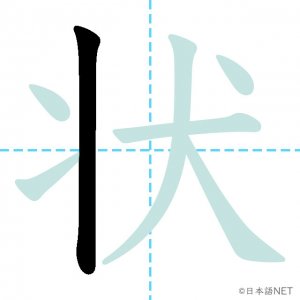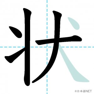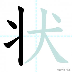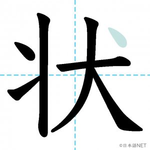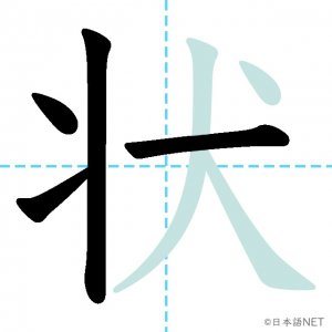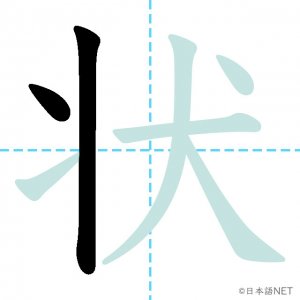 N2 漢字漢字【JLPT N2漢字】「状」の意味・読み方・書き順 2020年12月28日 2020年12月28日 Facebook postはてブLINEPocketFeedlyfa-exclamation-triangle記事内に商品プロモーションが含まれる場合があります目次1 「状」の漢字について2 「状」の書き順3 「状」を含む言葉4 関連書籍「状」の漢字について読み方音読みじょう訓読み-意味state / condition / circumstances,部首犬画数7JLPTレベルN2 「状」の書き順1画目2画目3画目4画目5画目6画目7画目「状」を含む言葉状態(じょうたい)状況(じょうきょう)症状(しょうじょう)賞状(しょうじょう)令状(れいじょう)現状(げんじょう)白状(はくじょう)年賀状(ねんがじょう)関連書籍 日本語総まとめ N2 漢字 [英語・ベトナム語版] Nihongo Soumatome N2 Kanji (English/Vietnamese Edition) Amazon 楽天市場 Yahooショッピング 新完全マスター漢字 日本語能力試験N2 Amazon 楽天市場 Yahooショッピング 日本語を学ぶ外国人のための これで覚える! 漢字字典2500ナツメ社 Amazon 楽天市場 Yahooショッピング Facebook postはてブLINEPocketFeedly