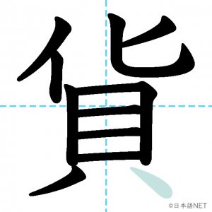 N2 漢字漢字【JLPT N2漢字】「貨」の意味・読み方・書き順 2020年12月29日 2020年12月29日 Facebook postはてブLINEPocketFeedlyfa-exclamation-triangle記事内に商品プロモーションが含まれる場合があります目次1 「貨」の漢字について2 「貨」の書き順3 「貨」を含む言葉4 関連書籍「貨」の漢字について読み方音読みか訓読み-意味freight / goods / currency部首貝画数11JLPTレベルN2 「貨」の書き順1画目2画目3画目4画目5画目6画目7画目8画目9画目10画目11画目「貨」を含む言葉貨幣(かへい)硬貨(こうか)貨物(かもつ)外貨(がいか)金貨(きんか)百貨店(ひゃっかてん)雑貨(ざっか)通貨(つうか)関連書籍 日本語総まとめ N2 漢字 [英語・ベトナム語版] Nihongo Soumatome N2 Kanji (English/Vietnamese Edition) Amazon 楽天市場 Yahooショッピング 新完全マスター漢字 日本語能力試験N2 Amazon 楽天市場 Yahooショッピング 日本語を学ぶ外国人のための これで覚える! 漢字字典2500ナツメ社 Amazon 楽天市場 Yahooショッピング Facebook postはてブLINEPocketFeedly