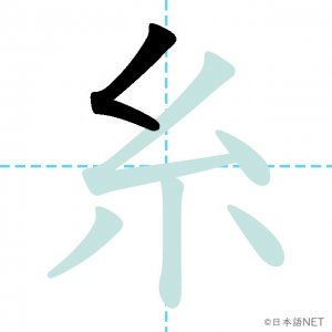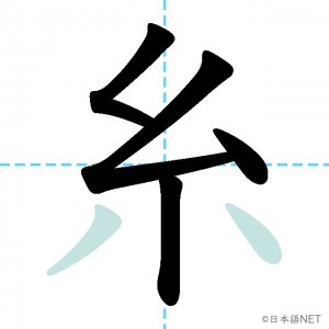 N2 漢字漢字【JLPT N2漢字】「糸」の意味・読み方・書き順 2020年12月30日 2020年12月30日 Facebook postはてブLINEPocketFeedlyfa-exclamation-triangle記事内に商品プロモーションが含まれる場合があります目次1 「糸」の漢字について2 「糸」の書き順3 「糸」を含む言葉4 関連書籍「糸」の漢字について読み方音読みし訓読みいと意味thread部首糸画数6JLPTレベルN2 「糸」の書き順1画目2画目3画目4画目5画目6画目「糸」を含む言葉糸(いと)毛糸(けいと)関連書籍 日本語総まとめ N2 漢字 [英語・ベトナム語版] Nihongo Soumatome N2 Kanji (English/Vietnamese Edition) Amazon 楽天市場 Yahooショッピング 新完全マスター漢字 日本語能力試験N2 Amazon 楽天市場 Yahooショッピング 日本語を学ぶ外国人のための これで覚える! 漢字字典2500ナツメ社 Amazon 楽天市場 Yahooショッピング Facebook postはてブLINEPocketFeedly