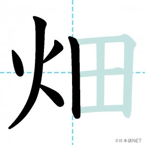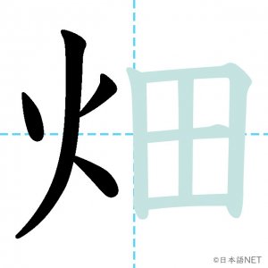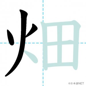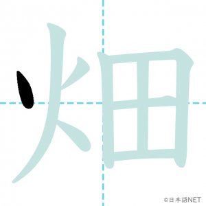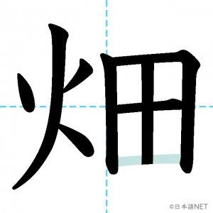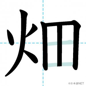 N2 漢字漢字【JLPT N2漢字】「畑」の意味・読み方・書き順 2021年1月3日 2021年1月3日 Facebook postはてブLINEPocketFeedlyfa-exclamation-triangle記事内に商品プロモーションが含まれる場合があります目次1 「畑」の漢字について2 「畑」の書き順3 「畑」を含む言葉4 関連書籍「畑」の漢字について読み方音読み-訓読みはた はたけ意味field / garden部首田画数9JLPTレベルN2 「畑」の書き順1画目2画目3画目4画目5画目6画目7画目8画目9画目「畑」を含む言葉畑(はたけ)花畑(はなばたけ)田畑(たばたけ)関連書籍 日本語総まとめ N2 漢字 [英語・ベトナム語版] Nihongo Soumatome N2 Kanji (English/Vietnamese Edition) Amazon 楽天市場 Yahooショッピング 新完全マスター漢字 日本語能力試験N2 Amazon 楽天市場 Yahooショッピング 日本語を学ぶ外国人のための これで覚える! 漢字字典2500ナツメ社 Amazon 楽天市場 Yahooショッピング Facebook postはてブLINEPocketFeedly