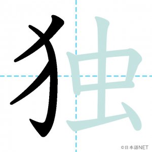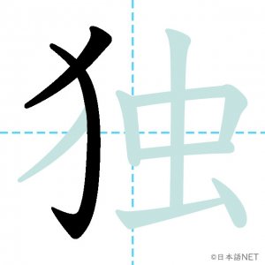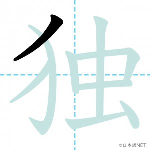 N2 漢字漢字【JLPT N2漢字】「独」の意味・読み方・書き順 2021年1月4日 2021年1月4日 Facebook postはてブLINEPocketFeedlyfa-exclamation-triangle記事内に商品プロモーションが含まれる場合があります目次1 「独」の漢字について2 「独」の書き順3 「独」を含む言葉4 関連書籍「独」の漢字について読み方音読みどく訓読みひと-り意味single / alone部首犬(犭)画数9JLPTレベルN2 「独」の書き順1画目2画目3画目4画目5画目6画目7画目8画目9画目「独」を含む言葉独身(どくしん)独占(どくせん)孤独(こどく)独立(どくりつ)独特(どくとく)単独(たんどく)独学(どくがく)関連書籍 日本語総まとめ N2 漢字 [英語・ベトナム語版] Nihongo Soumatome N2 Kanji (English/Vietnamese Edition) Amazon 楽天市場 Yahooショッピング 新完全マスター漢字 日本語能力試験N2 Amazon 楽天市場 Yahooショッピング 日本語を学ぶ外国人のための これで覚える! 漢字字典2500ナツメ社 Amazon 楽天市場 Yahooショッピング Facebook postはてブLINEPocketFeedly