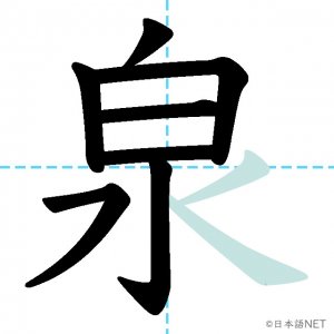 N2 漢字漢字【JLPT N2漢字】「泉」の意味・読み方・書き順 2021年1月4日 2021年1月4日 Facebook postはてブLINEPocketFeedlyfa-exclamation-triangle記事内に商品プロモーションが含まれる場合があります目次1 「泉」の漢字について2 「泉」の書き順3 「泉」を含む言葉4 関連書籍「泉」の漢字について読み方音読みせん訓読みいずみ意味spring / fountain部首水(氵,氺)画数9JLPTレベルN2 「泉」の書き順1画目2画目3画目4画目5画目6画目7画目8画目9画目「泉」を含む言葉温泉(おんせん)泉(いずみ)関連書籍 日本語総まとめ N2 漢字 [英語・ベトナム語版] Nihongo Soumatome N2 Kanji (English/Vietnamese Edition) Amazon 楽天市場 Yahooショッピング 新完全マスター漢字 日本語能力試験N2 Amazon 楽天市場 Yahooショッピング 日本語を学ぶ外国人のための これで覚える! 漢字字典2500ナツメ社 Amazon 楽天市場 Yahooショッピング Facebook postはてブLINEPocketFeedly