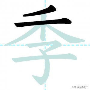 N2 漢字漢字【JLPT N2漢字】「季」の意味・読み方・書き順 2021年1月7日 2021年1月7日 Facebook postはてブLINEPocketFeedlyfa-exclamation-triangle記事内に商品プロモーションが含まれる場合があります目次1 「季」の漢字について2 「季」の書き順3 「季」を含む言葉4 関連書籍「季」の漢字について読み方音読みき訓読み-意味season部首子画数8JLPTレベルN2 「季」の書き順1画目2画目3画目4画目5画目6画目7画目8画目「季」を含む言葉季節(きせつ)四季(しき)夏季(かき)冬季(とうき)季刊(きかん)季節風(きせつふう)関連書籍 日本語総まとめ N2 漢字 [英語・ベトナム語版] Nihongo Soumatome N2 Kanji (English/Vietnamese Edition) Amazon 楽天市場 Yahooショッピング 新完全マスター漢字 日本語能力試験N2 Amazon 楽天市場 Yahooショッピング 日本語を学ぶ外国人のための これで覚える! 漢字字典2500ナツメ社 Amazon 楽天市場 Yahooショッピング Facebook postはてブLINEPocketFeedly