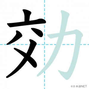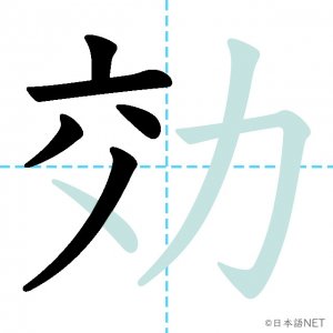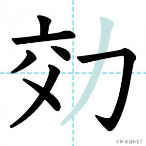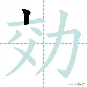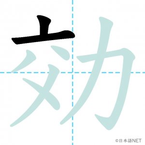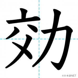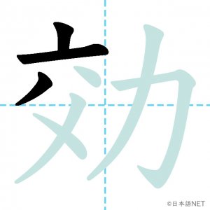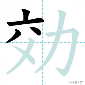 N2 漢字漢字【JLPT N2漢字】「効」の意味・読み方・書き順 2021年1月11日 2021年1月11日 Facebook postはてブLINEPocketFeedlyfa-exclamation-triangle記事内に商品プロモーションが含まれる場合があります目次1 「効」の漢字について2 「効」の書き順3 「効」を含む言葉4 関連書籍「効」の漢字について読み方音読みこう訓読みき-く意味to effect / efficacy部首力画数8JLPTレベルN2 「効」の書き順1画目2画目3画目4画目5画目6画目7画目8画目「効」を含む言葉効果(こうか)効力(こうりょく)効率(こうりつ)効く(きく)有効(ゆうこう)無効(むこう)失効(しっこう)効き目(ききめ)関連書籍 日本語総まとめ N2 漢字 [英語・ベトナム語版] Nihongo Soumatome N2 Kanji (English/Vietnamese Edition) Amazon 楽天市場 Yahooショッピング 新完全マスター漢字 日本語能力試験N2 Amazon 楽天市場 Yahooショッピング 日本語を学ぶ外国人のための これで覚える! 漢字字典2500ナツメ社 Amazon 楽天市場 Yahooショッピング Facebook postはてブLINEPocketFeedly