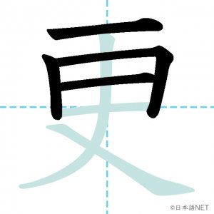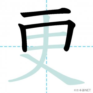 N2 漢字漢字【JLPT N2漢字】「更」の意味・読み方・書き順 2021年1月12日 2021年1月12日 Facebook postはてブLINEPocketFeedlyfa-exclamation-triangle記事内に商品プロモーションが含まれる場合があります目次1 「更」の漢字について2 「更」の書き順3 「更」を含む言葉4 関連書籍「更」の漢字について読み方音読みこう訓読みさら ふ-ける ふ-かす意味to grow late / night watch / to renovate部首日画数7JLPTレベルN2 「更」の書き順1画目2画目3画目4画目5画目6画目7画目「更」を含む言葉変更(へんこう)更新(こうしん)更生(こうせい)更に(さらに)今更(いまさら)尚更(なおさら)夜更かし(よふかし)関連書籍 日本語総まとめ N2 漢字 [英語・ベトナム語版] Nihongo Soumatome N2 Kanji (English/Vietnamese Edition) Amazon 楽天市場 Yahooショッピング 新完全マスター漢字 日本語能力試験N2 Amazon 楽天市場 Yahooショッピング 日本語を学ぶ外国人のための これで覚える! 漢字字典2500ナツメ社 Amazon 楽天市場 Yahooショッピング Facebook postはてブLINEPocketFeedly