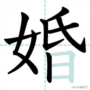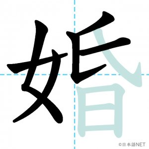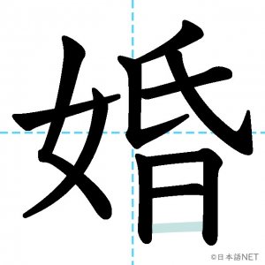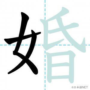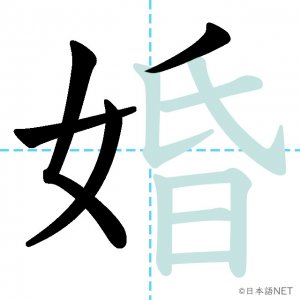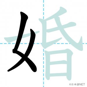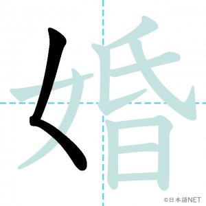 N3 漢字漢字【JLPT N3漢字】「婚」の意味・読み方・書き順 2021年1月14日 2021年1月14日 Facebook postはてブLINEPocketFeedlyfa-exclamation-triangle記事内に商品プロモーションが含まれる場合があります目次1 「婚」の漢字について2 「婚」の書き順3 「婚」を含む言葉4 関連書籍「婚」の漢字について読み方音読みこん訓読み-意味marriage部首女画数11JLPTレベルN3 「婚」の書き順1画目2画目3画目4画目5画目6画目7画目8画目9画目10画目11画目「婚」を含む言葉結婚(けっこん)婚約(こんやく)離婚(りこん)未婚(みこん)既婚(きこん)新婚(しんこん)初婚(しょこん)再婚(さいこん)婚姻(こんいん)求婚(きゅうこん)関連書籍 新完全マスター漢字 日本語能力試験N3 Amazon 楽天市場 Yahooショッピング 日本語総まとめ N3 漢字 (「日本語能力試験」対策) Nihongo Soumatome N3 Kanji Kindle Amazon 楽天市場 Yahooショッピング 日本語を学ぶ外国人のための これで覚える! 漢字字典2500ナツメ社 Amazon 楽天市場 Yahooショッピング Facebook postはてブLINEPocketFeedly