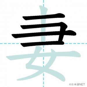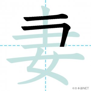 N3 漢字漢字【JLPT N3漢字】「妻」の意味・読み方・書き順 2021年1月18日 2021年1月18日 Facebook postはてブLINEPocketFeedlyfa-exclamation-triangle記事内に商品プロモーションが含まれる場合があります目次1 「妻」の漢字について2 「妻」の書き順3 「妻」を含む言葉4 関連書籍「妻」の漢字について読み方音読みさい訓読みつま意味wife部首女画数8JLPTレベルN3 「妻」の書き順1画目2画目3画目4画目5画目6画目7画目8画目「妻」を含む言葉妻(つま)夫妻(ふさい)妻子(さいし)関連書籍 新完全マスター漢字 日本語能力試験N3 Amazon 楽天市場 Yahooショッピング 日本語総まとめ N3 漢字 (「日本語能力試験」対策) Nihongo Soumatome N3 Kanji Kindle Amazon 楽天市場 Yahooショッピング 日本語を学ぶ外国人のための これで覚える! 漢字字典2500ナツメ社 Amazon 楽天市場 Yahooショッピング Facebook postはてブLINEPocketFeedly
