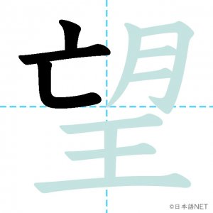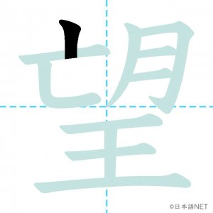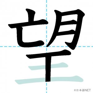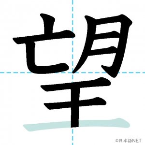 N3 漢字漢字【JLPT N3漢字】「望」の意味・読み方・書き順 2021年1月19日 2021年1月19日 Facebook postはてブLINEPocketFeedlyfa-exclamation-triangle記事内に商品プロモーションが含まれる場合があります目次1 「望」の漢字について2 「望」の書き順3 「望」を含む言葉4 関連書籍「望」の漢字について読み方音読みぼう もう訓読みのぞ-む意味to hope / to desire,部首月画数11JLPTレベルN3 「望」の書き順1画目2画目3画目4画目5画目6画目7画目8画目9画目10画目11画目「望」を含む言葉望む(のぞむ)希望(きぼう)失望(しつぼう)志望(しぼう)望遠鏡(ぼうえんきょう)絶望(ぜつぼう)人望(じんぼう)切望(せつぼう)待望(たいぼう)展望(てんぼう)信望(しんぼう)関連書籍 新完全マスター漢字 日本語能力試験N3 Amazon 楽天市場 Yahooショッピング 日本語総まとめ N3 漢字 (「日本語能力試験」対策) Nihongo Soumatome N3 Kanji Kindle Amazon 楽天市場 Yahooショッピング 日本語を学ぶ外国人のための これで覚える! 漢字字典2500ナツメ社 Amazon 楽天市場 Yahooショッピング Facebook postはてブLINEPocketFeedly
