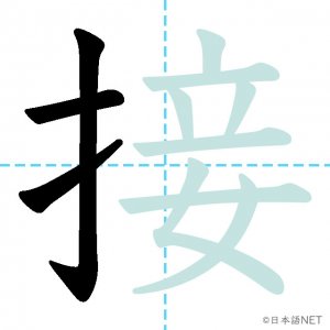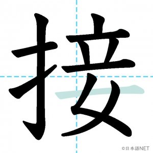 N3 漢字漢字【JLPT N3漢字】「接」の意味・読み方・書き順 2021年1月19日 2021年1月19日 Facebook postはてブLINEPocketFeedlyfa-exclamation-triangle記事内に商品プロモーションが含まれる場合があります目次1 「接」の漢字について2 「接」の書き順3 「接」を含む言葉4 関連書籍「接」の漢字について読み方音読みせつ訓読みつ-ぐ意味to contact / to join部首手(扌龵画数11JLPTレベルN3 「接」の書き順1画目2画目3画目4画目5画目6画目7画目8画目9画目10画目11画目「接」を含む言葉面接(めんせつ)直接(ちょくせつ)接続(せつぞく)接近(せっきん)密接(みっせつ)接点(せってん)接触(せっしょく)応接(おうせつ)関連書籍 新完全マスター漢字 日本語能力試験N3 Amazon 楽天市場 Yahooショッピング 日本語総まとめ N3 漢字 (「日本語能力試験」対策) Nihongo Soumatome N3 Kanji Kindle Amazon 楽天市場 Yahooショッピング 日本語を学ぶ外国人のための これで覚える! 漢字字典2500ナツメ社 Amazon 楽天市場 Yahooショッピング Facebook postはてブLINEPocketFeedly