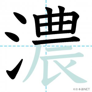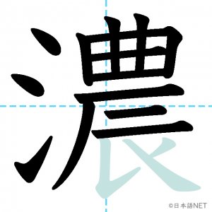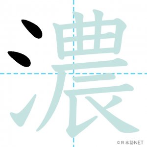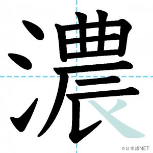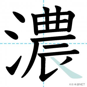 N3 漢字漢字【JLPT N3漢字】「濃」の意味・読み方・書き順 2021年1月21日 2021年1月21日 Facebook postはてブLINEPocketFeedlyfa-exclamation-triangle記事内に商品プロモーションが含まれる場合があります目次1 「濃」の漢字について2 「濃」の書き順3 「濃」を含む言葉4 関連書籍「濃」の漢字について読み方音読みのう訓読みこ-い意味concentrated / thick / dark部首水(氵,氺)画数16JLPTレベルN3 「濃」の書き順1画目2画目3画目4画目5画目6画目7画目8画目9画目10画目11画目12画目13画目14画目15画目16画目「濃」を含む言葉濃い(こい)濃厚(のうこう)濃度(のうど)濃縮(のうしゅく)関連書籍 新完全マスター漢字 日本語能力試験N3 Amazon 楽天市場 Yahooショッピング 日本語総まとめ N3 漢字 (「日本語能力試験」対策) Nihongo Soumatome N3 Kanji Kindle Amazon 楽天市場 Yahooショッピング 日本語を学ぶ外国人のための これで覚える! 漢字字典2500ナツメ社 Amazon 楽天市場 Yahooショッピング Facebook postはてブLINEPocketFeedly