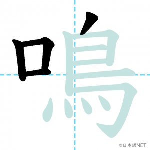 N3 漢字漢字【JLPT N3漢字】「鳴」の意味・読み方・書き順 2021年1月23日 2021年1月23日 Facebook postはてブLINEPocketFeedlyfa-exclamation-triangle記事内に商品プロモーションが含まれる場合があります目次1 「鳴」の漢字について2 「鳴」の書き順3 「鳴」を含む言葉4 関連書籍「鳴」の漢字について読み方音読みめい訓読みな-く な-る な-らす意味to cry / to bark / to chirp / to sound部首鳥画数14JLPTレベルN3 「鳴」の書き順1画目2画目3画目4画目5画目6画目7画目8画目9画目10画目11画目12画目13画目14画目「鳴」を含む言葉鳴る(なる)鳴く(なく)共鳴(きょうめい)雷鳴(らいめい)悲鳴(ひめい)鳴き声(なきごえ)関連書籍 新完全マスター漢字 日本語能力試験N3 Amazon 楽天市場 Yahooショッピング 日本語総まとめ N3 漢字 (「日本語能力試験」対策) Nihongo Soumatome N3 Kanji Kindle Amazon 楽天市場 Yahooショッピング 日本語を学ぶ外国人のための これで覚える! 漢字字典2500ナツメ社 Amazon 楽天市場 Yahooショッピング Facebook postはてブLINEPocketFeedly