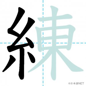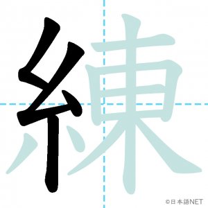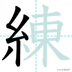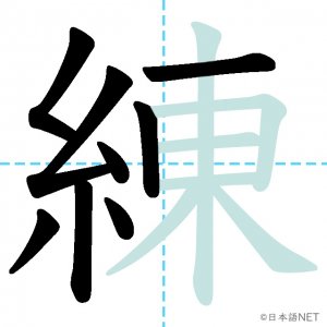 N3 漢字漢字【JLPT N3漢字】「練」の意味・読み方・書き順 2021年1月23日 2021年1月23日 Facebook postはてブLINEPocketFeedlyfa-exclamation-triangle記事内に商品プロモーションが含まれる場合があります目次1 「練」の漢字について2 「練」の書き順3 「練」を含む言葉4 関連書籍「練」の漢字について読み方音読みれん訓読みね-る意味practice / train / drill部首糸画数14JLPTレベルN3 「練」の書き順1画目2画目3画目4画目5画目6画目7画目8画目9画目10画目11画目12画目13画目14画目「練」を含む言葉練習(れんしゅう)訓練(くんれん)未練(みれん)洗練(せんれん)試練(しれん)練る(ねる)関連書籍 新完全マスター漢字 日本語能力試験N3 Amazon 楽天市場 Yahooショッピング 日本語総まとめ N3 漢字 (「日本語能力試験」対策) Nihongo Soumatome N3 Kanji Kindle Amazon 楽天市場 Yahooショッピング 日本語を学ぶ外国人のための これで覚える! 漢字字典2500ナツメ社 Amazon 楽天市場 Yahooショッピング Facebook postはてブLINEPocketFeedly