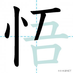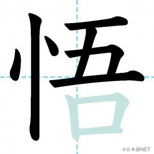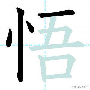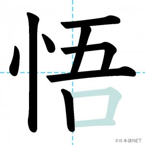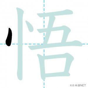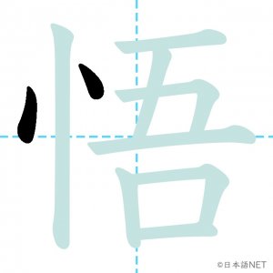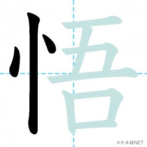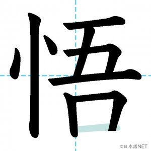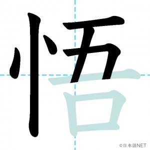 N1 漢字漢字【JLPT N1漢字】「悟」の意味・読み方・書き順 2021年1月29日 2021年1月29日 Facebook postはてブLINEPocketFeedlyfa-exclamation-triangle記事内に商品プロモーションが含まれる場合があります目次1 「悟」の漢字について2 「悟」の書き順3 「悟」を含む言葉4 関連書籍「悟」の漢字について読み方音読みご訓読みさと-る意味心(忄⺗)部首to perceive / to realize / enlightenment画数10JLPTレベルN1 「悟」の書き順1画目2画目3画目4画目5画目6画目7画目8画目9画目10画目「悟」を含む言葉悟る(さとる)覚悟(かくご)関連書籍 日本語総まとめ N1 漢字 [英語・ベトナム語版] (「日本語能力試験」対策) Amazon 楽天市場 Yahooショッピング 新完全マスター漢字 日本語能力試験N1 Amazon 楽天市場 Yahooショッピング 日本語を学ぶ外国人のための これで覚える! 漢字字典2500ナツメ社 Amazon 楽天市場 Yahooショッピング Facebook postはてブLINEPocketFeedly