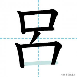 N1 漢字漢字【JLPT N1漢字】「呂」の意味・読み方・書き順 2021年1月30日 2021年1月30日 Facebook postはてブLINEPocketFeedlyfa-exclamation-triangle記事内に商品プロモーションが含まれる場合があります目次1 「呂」の漢字について2 「呂」の書き順3 「呂」を含む言葉4 関連書籍「呂」の漢字について読み方音読みろ訓読み-意味spine部首口画数7JLPTレベルN1 「呂」の書き順1画目2画目3画目4画目5画目6画目7画目「呂」を含む言葉風呂(ふろ)風呂敷(ふろしき)語呂(ごろ)関連書籍 日本語総まとめ N1 漢字 [英語・ベトナム語版] (「日本語能力試験」対策) Amazon 楽天市場 Yahooショッピング 新完全マスター漢字 日本語能力試験N1 Amazon 楽天市場 Yahooショッピング 日本語を学ぶ外国人のための これで覚える! 漢字字典2500ナツメ社 Amazon 楽天市場 Yahooショッピング Facebook postはてブLINEPocketFeedly