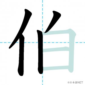 N1 漢字漢字【JLPT N1漢字】「伯」の意味・読み方・書き順 2021年2月7日 2021年2月7日 Facebook postはてブLINEPocketFeedlyfa-exclamation-triangle記事内に商品プロモーションが含まれる場合があります目次1 「伯」の漢字について2 「伯」の書き順3 「伯」を含む言葉4 関連書籍「伯」の漢字について読み方音読みはく訓読み-意味chief / uncle / aunt部首人(亻)画数7JLPTレベルN1 「伯」の書き順1画目2画目3画目4画目5画目6画目7画目「伯」を含む言葉伯父(おば)伯母(おば)画伯(がはく)伯爵(はくしゃく)関連書籍 日本語総まとめ N1 漢字 [英語・ベトナム語版] (「日本語能力試験」対策) Amazon 楽天市場 Yahooショッピング 新完全マスター漢字 日本語能力試験N1 Amazon 楽天市場 Yahooショッピング 日本語を学ぶ外国人のための これで覚える! 漢字字典2500ナツメ社 Amazon 楽天市場 Yahooショッピング Facebook postはてブLINEPocketFeedly