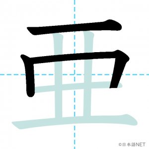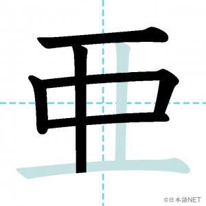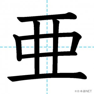 N1 漢字漢字【JLPT N1漢字】「亜」の意味・読み方・書き順 2021年2月9日 2021年2月9日 Facebook postはてブLINEPocketFeedlyfa-exclamation-triangle記事内に商品プロモーションが含まれる場合があります目次1 「亜」の漢字について2 「亜」の書き順3 「亜」を含む言葉4 関連書籍「亜」の漢字について読み方音読みあ訓読み-意味Asia / sub-部首二画数7JLPTレベルN1 「亜」の書き順1画目2画目3画目4画目5画目6画目7画目「亜」を含む言葉亜鉛(あえん)亜流(ありゅう)亜種(あしゅ)亜熱帯(あねったい)関連書籍 日本語総まとめ N1 漢字 [英語・ベトナム語版] (「日本語能力試験」対策) Amazon 楽天市場 Yahooショッピング 新完全マスター漢字 日本語能力試験N1 Amazon 楽天市場 Yahooショッピング 日本語を学ぶ外国人のための これで覚える! 漢字字典2500ナツメ社 Amazon 楽天市場 Yahooショッピング Facebook postはてブLINEPocketFeedly