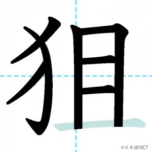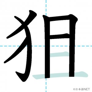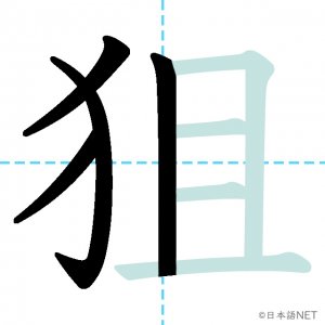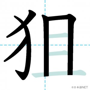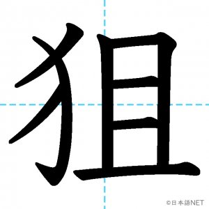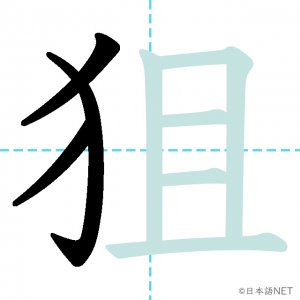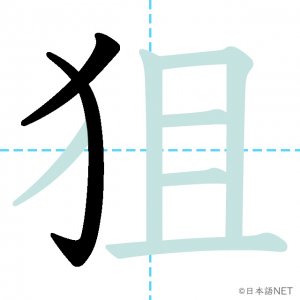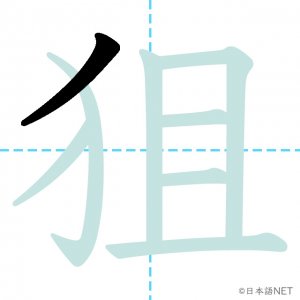 N1 漢字漢字【JLPT N1漢字】「狙」の意味・読み方・書き順 2021年2月10日 2021年2月10日 Facebook postはてブLINEPocketFeedlyfa-exclamation-triangle記事内に商品プロモーションが含まれる場合があります目次1 「狙」の漢字について2 「狙」の書き順3 「狙」を含む言葉4 関連書籍「狙」の漢字について読み方音読みそ訓読みねら-う意味to aim at部首犬(犭)画数8JLPTレベルN1 「狙」の書き順1画目2画目3画目4画目5画目6画目7画目8画目「狙」を含む言葉狙い(ねらい)狙う(ねらう)狙撃(そげき)関連書籍 日本語総まとめ N1 漢字 [英語・ベトナム語版] (「日本語能力試験」対策) Amazon 楽天市場 Yahooショッピング 新完全マスター漢字 日本語能力試験N1 Amazon 楽天市場 Yahooショッピング 日本語を学ぶ外国人のための これで覚える! 漢字字典2500ナツメ社 Amazon 楽天市場 Yahooショッピング Facebook postはてブLINEPocketFeedly