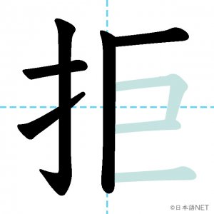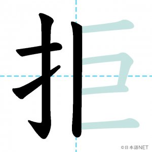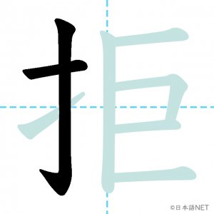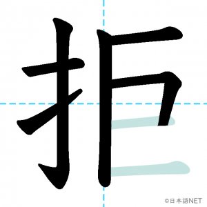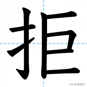 N1 漢字漢字【JLPT N1漢字】「拒」の意味・読み方・書き順 2021年2月12日 2021年2月12日 Facebook postはてブLINEPocketFeedlyfa-exclamation-triangle記事内に商品プロモーションが含まれる場合があります目次1 「拒」の漢字について2 「拒」の書き順3 「拒」を含む言葉4 関連書籍「拒」の漢字について読み方音読みきょ訓読みこば-む意味to refuse / to reject / to decline部首手(扌龵)画数8JLPTレベルN1 「拒」の書き順1画目2画目3画目4画目5画目6画目7画目8画目「拒」を含む言葉拒否(きょひ)拒む(こばむ)拒絶(きょぜつ)関連書籍 日本語総まとめ N1 漢字 [英語・ベトナム語版] (「日本語能力試験」対策) Amazon 楽天市場 Yahooショッピング 新完全マスター漢字 日本語能力試験N1 Amazon 楽天市場 Yahooショッピング 日本語を学ぶ外国人のための これで覚える! 漢字字典2500ナツメ社 Amazon 楽天市場 Yahooショッピング Facebook postはてブLINEPocketFeedly
