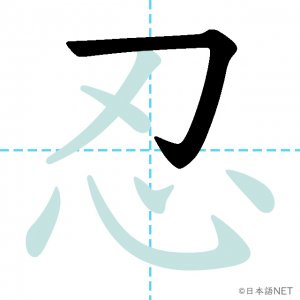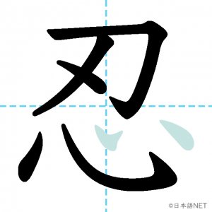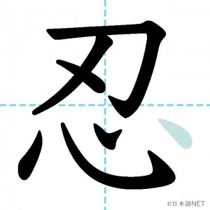 N1 漢字漢字【JLPT N1漢字】「忍」の意味・読み方・書き順 2021年2月12日 2021年2月12日 Facebook postはてブLINEPocketFeedlyfa-exclamation-triangle記事内に商品プロモーションが含まれる場合があります目次1 「忍」の漢字について2 「忍」の書き順3 「忍」を含む言葉4 関連書籍「忍」の漢字について読み方音読みにん訓読みしの-ぶ しの-ばせる意味to endure / spy部首心(忄⺗)画数7JLPTレベルN1 「忍」の書き順1画目2画目3画目4画目5画目6画目7画目「忍」を含む言葉堪忍(かんにん)忍耐(にんたい)忍術(にんじゅつ)忍者(にんじゃ) NARUTO -ナルト- 1 (ジャンプコミックス)Shueisha/Tsai Fong Books Amazon 楽天市場 Yahooショッピング関連書籍 日本語総まとめ N1 漢字 [英語・ベトナム語版] (「日本語能力試験」対策) Amazon 楽天市場 Yahooショッピング 新完全マスター漢字 日本語能力試験N1 Amazon 楽天市場 Yahooショッピング 日本語を学ぶ外国人のための これで覚える! 漢字字典2500ナツメ社 Amazon 楽天市場 Yahooショッピング Facebook postはてブLINEPocketFeedly