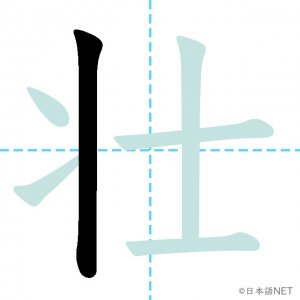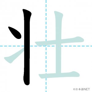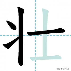 N1 漢字漢字【JLPT N1漢字】「壮」の意味・読み方・書き順 2021年2月12日 2021年2月12日 Facebook postはてブLINEPocketFeedlyfa-exclamation-triangle記事内に商品プロモーションが含まれる場合があります目次1 「壮」の漢字について2 「壮」の書き順3 「壮」を含む言葉4 関連書籍「壮」の漢字について読み方音読みそう訓読み-意味robust / manhood,部首士画数6JLPTレベルN1 「壮」の書き順1画目2画目3画目4画目5画目6画目「壮」を含む言葉壮大な(そうだいな)壮絶な(そうぜつな)関連書籍 日本語総まとめ N1 漢字 [英語・ベトナム語版] (「日本語能力試験」対策) Amazon 楽天市場 Yahooショッピング 新完全マスター漢字 日本語能力試験N1 Amazon 楽天市場 Yahooショッピング 日本語を学ぶ外国人のための これで覚える! 漢字字典2500ナツメ社 Amazon 楽天市場 Yahooショッピング Facebook postはてブLINEPocketFeedly