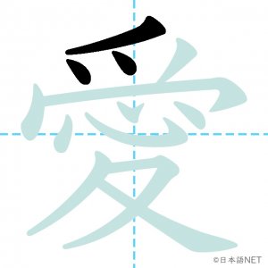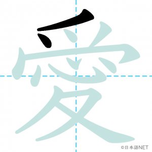 N2 漢字漢字【JLPT N2漢字】「愛」の意味・読み方・書き順 2021年2月15日 2021年2月15日 Facebook postはてブLINEPocketFeedlyfa-exclamation-triangle記事内に商品プロモーションが含まれる場合があります目次1 「愛」の漢字について2 「愛」の書き順3 「愛」を含む言葉4 関連書籍「愛」の漢字について読み方音読みあい訓読み-意味love / affection部首心(忄⺗)画数13JLPTレベルN2 「愛」の書き順1画目2画目3画目4画目5画目6画目7画目8画目9画目10画目11画目12画目「愛」を含む言葉愛(あい)愛する(あいする)恋愛(れんあい)愛情(あいじょう)純愛(じゅんあい)愛想(あいそ)求愛(きゅうあい)自愛(じあい)関連書籍 日本語総まとめ N2 漢字 [英語・ベトナム語版] Nihongo Soumatome N2 Kanji (English/Vietnamese Edition) Amazon 楽天市場 Yahooショッピング 新完全マスター漢字 日本語能力試験N2 Amazon 楽天市場 Yahooショッピング 日本語を学ぶ外国人のための これで覚える! 漢字字典2500ナツメ社 Amazon 楽天市場 Yahooショッピング Facebook postはてブLINEPocketFeedly