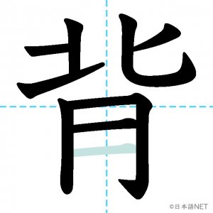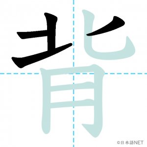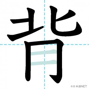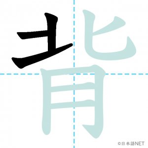 N2 漢字漢字【JLPT N2漢字】「背」の意味・読み方・書き順 2021年2月21日 2021年2月21日 Facebook postはてブLINEPocketFeedlyfa-exclamation-triangle記事内に商品プロモーションが含まれる場合があります目次1 「背」の漢字について2 「背」の書き順3 「背」を含む言葉4 関連書籍「背」の漢字について読み方音読みはい訓読みせ せい そむ-く そむ-ける意味back / behind / stature / height部首肉(⺼)画数9JLPTレベルN2 「背」の書き順1画目2画目3画目4画目5画目6画目7画目8画目9画目「背」を含む言葉背中(せなか)背後(はいご)背景(はいけい)背広(せびろ)背負う(せおう)背丈(せたけ)背筋(せすじ)猫背(ねこぜ)背面(はいめん)背泳ぎ(せおよぎ)関連書籍 日本語総まとめ N2 漢字 [英語・ベトナム語版] Nihongo Soumatome N2 Kanji (English/Vietnamese Edition) Amazon 楽天市場 Yahooショッピング 新完全マスター漢字 日本語能力試験N2 Amazon 楽天市場 Yahooショッピング 日本語を学ぶ外国人のための これで覚える! 漢字字典2500ナツメ社 Amazon 楽天市場 Yahooショッピング Facebook postはてブLINEPocketFeedly