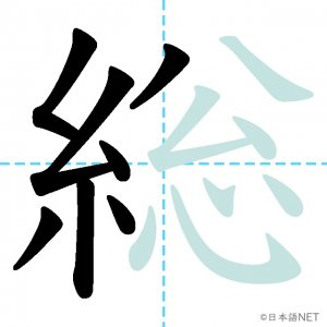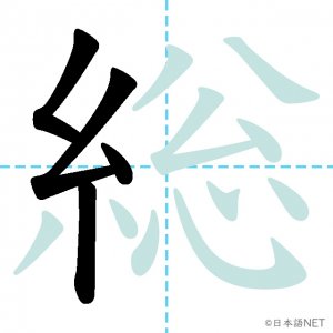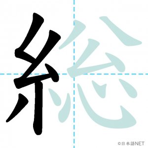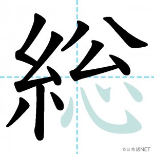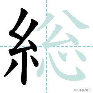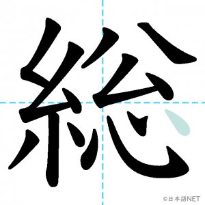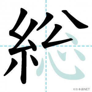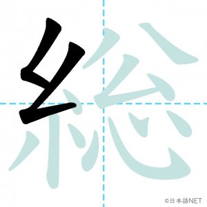 N2 漢字漢字【JLPT N2漢字】「総」の意味・読み方・書き順 2021年2月25日 2021年2月25日 Facebook postはてブLINEPocketFeedlyfa-exclamation-triangle記事内に商品プロモーションが含まれる場合があります目次1 「総」の漢字について2 「総」の書き順3 「総」を含む言葉4 関連書籍「総」の漢字について読み方音読みそう訓読み-意味general / total / all / full / whole部首糸画数14JLPTレベルN2 「総」の書き順1画目2画目3画目4画目5画目6画目7画目8画目9画10画目11画目12画目13画目14画目「総」を含む言葉総合(そうごう)総理大臣(そうりだいじん)総会(そうかい)総計(そうけい)総額(そうがく)関連書籍 日本語総まとめ N2 漢字 [英語・ベトナム語版] Nihongo Soumatome N2 Kanji (English/Vietnamese Edition) Amazon 楽天市場 Yahooショッピング 新完全マスター漢字 日本語能力試験N2 Amazon 楽天市場 Yahooショッピング 日本語を学ぶ外国人のための これで覚える! 漢字字典2500ナツメ社 Amazon 楽天市場 Yahooショッピング Facebook postはてブLINEPocketFeedly