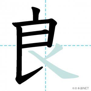 N2 漢字漢字【JLPT N2漢字】「良」の意味・読み方・書き順 2021年2月26日 2021年2月26日 Facebook postはてブLINEPocketFeedlyfa-exclamation-triangle記事内に商品プロモーションが含まれる場合があります目次1 「良」の漢字について2 「良」の書き順3 「良い」を含む言葉4 関連書籍「良」の漢字について読み方音読みりょう訓読みよ-い意味good部首艮画数7JLPTレベルN2 「良」の書き順1画目2画目3画目4画目5画目6画目7画目「良い」を含む言葉良い(よい/いい)良心(りょうしん)良識(りょうしき)優良(ゆうりょう)改良(かいりょう)仲良し(なかよし)不良(ふりょう)善良(ぜんりょう)良好(りょうこう)関連書籍 日本語総まとめ N2 漢字 [英語・ベトナム語版] Nihongo Soumatome N2 Kanji (English/Vietnamese Edition) Amazon 楽天市場 Yahooショッピング 新完全マスター漢字 日本語能力試験N2 Amazon 楽天市場 Yahooショッピング 日本語を学ぶ外国人のための これで覚える! 漢字字典2500ナツメ社 Amazon 楽天市場 Yahooショッピング Facebook postはてブLINEPocketFeedly
