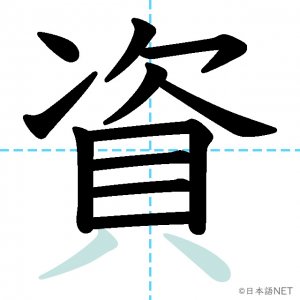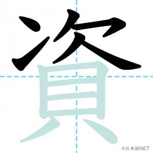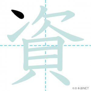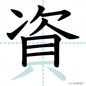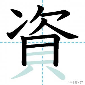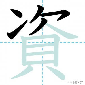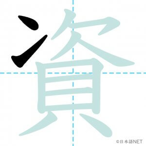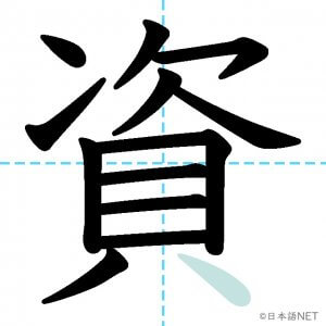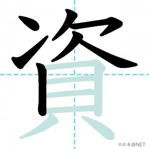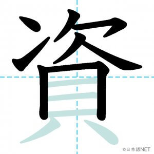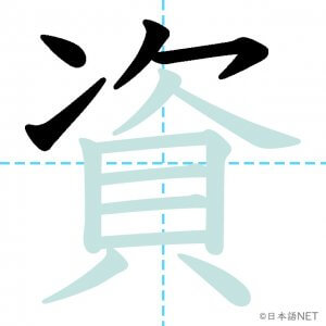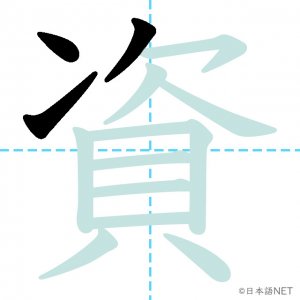 N2 漢字漢字【JLPT N2漢字】「資」の意味・読み方・書き順 2021年3月5日 2021年3月5日 Facebook postはてブLINEPocketFeedlyfa-exclamation-triangle記事内に商品プロモーションが含まれる場合があります目次1 「資」の漢字について2 「資」の書き順3 「資」を含む言葉4 関連書籍「資」の漢字について読み方音読みし訓読み-意味resources / capital / assets部首貝画数13JLPTレベルN2 「資」の書き順1画目2画目3画目4画目5画目6画目7画目8画目9画10画目11画目12画目13画目「資」を含む言葉資料(しりょう)資源(しげん)資産(しかん)資格(しかく)資金(しきん)資本(しほん)投資(とうし)融資(ゆうし)物資(ぶっし)外資(がいし)出資(しゅっし)関連書籍 日本語総まとめ N2 漢字 [英語・ベトナム語版] Nihongo Soumatome N2 Kanji (English/Vietnamese Edition) Amazon 楽天市場 Yahooショッピング 新完全マスター漢字 日本語能力試験N2 Amazon 楽天市場 Yahooショッピング 日本語を学ぶ外国人のための これで覚える! 漢字字典2500ナツメ社 Amazon 楽天市場 Yahooショッピング Facebook postはてブLINEPocketFeedly