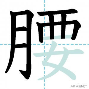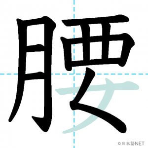 N2 漢字漢字【JLPT N2漢字】「腰」の意味・読み方・書き順 2021年3月6日 2021年3月6日 Facebook postはてブLINEPocketFeedlyfa-exclamation-triangle記事内に商品プロモーションが含まれる場合があります目次1 「腰」の漢字について2 「腰」の書き順3 「腰」を含む言葉4 関連書籍「腰」の漢字について読み方音読みよう訓読みこし意味waist / loins / hips,部首肉(⺼)画数13JLPTレベルN2 「腰」の書き順1画目2画目3画目4画目5画目6画目7画目8画目9画10画目11画目12画目13画目「腰」を含む言葉腰(こし)腰痛(ようつう)腰掛ける(こしかける)中腰(ちゅうごし)弱腰(よわごし)関連書籍 日本語総まとめ N2 漢字 [英語・ベトナム語版] Nihongo Soumatome N2 Kanji (English/Vietnamese Edition) Amazon 楽天市場 Yahooショッピング 新完全マスター漢字 日本語能力試験N2 Amazon 楽天市場 Yahooショッピング 日本語を学ぶ外国人のための これで覚える! 漢字字典2500ナツメ社 Amazon 楽天市場 Yahooショッピング Facebook postはてブLINEPocketFeedly