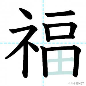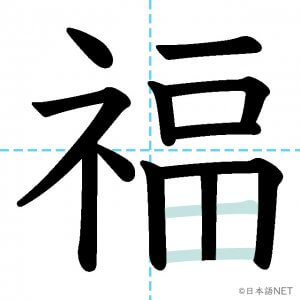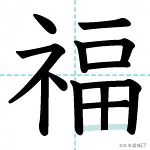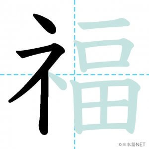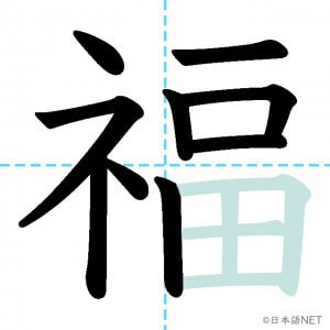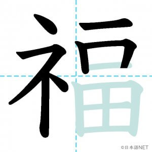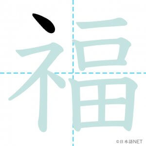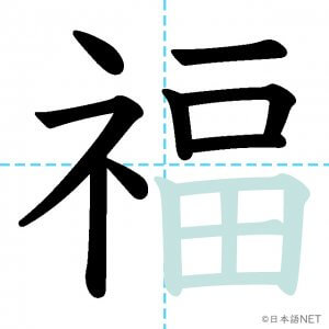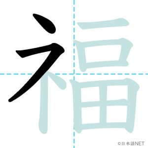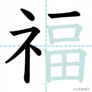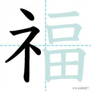 N2 漢字漢字【JLPT N2漢字】「福」の意味・読み方・書き順 2021年3月7日 2021年3月7日 Facebook postはてブLINEPocketFeedlyfa-exclamation-triangle記事内に商品プロモーションが含まれる場合があります目次1 「福」の漢字について2 「福」の書き順3 「福」を含む言葉4 関連書籍「福」の漢字について読み方音読みふく訓読み-意味fortune / blessing / luck部首示 (礻)画数13JLPTレベルN2 「福」の書き順1画目2画目3画目4画目5画目6画目7画目8画目9画10画目11画目12画目13画目「福」を含む言葉幸福(こうふく)福袋(ふくぶくろ)福祉(ふくし)大福(だいふく)祝福(しゅくふく)至福(しふく)七福神(しちふくじん)関連書籍 日本語総まとめ N2 漢字 [英語・ベトナム語版] Nihongo Soumatome N2 Kanji (English/Vietnamese Edition) Amazon 楽天市場 Yahooショッピング 新完全マスター漢字 日本語能力試験N2 Amazon 楽天市場 Yahooショッピング 日本語を学ぶ外国人のための これで覚える! 漢字字典2500ナツメ社 Amazon 楽天市場 Yahooショッピング Facebook postはてブLINEPocketFeedly