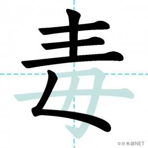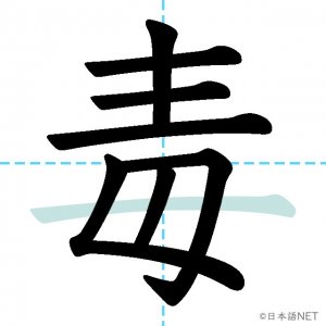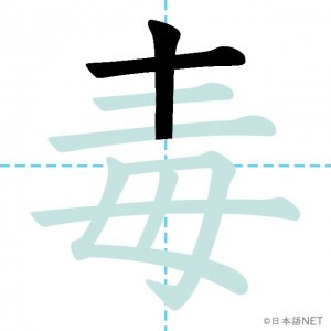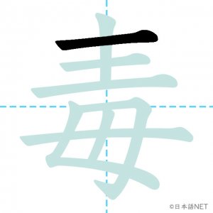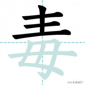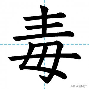 N2 漢字漢字【JLPT N2漢字】「毒」の意味・読み方・書き順 2021年3月9日 2021年3月9日 Facebook postはてブLINEPocketFeedlyfa-exclamation-triangle記事内に商品プロモーションが含まれる場合があります目次1 「毒」の漢字について2 「毒」の書き順3 「毒」を含む言葉4 関連書籍「毒」の漢字について読み方音読みどく訓読み-意味poison / venom部首毋画数8JLPTレベルN2 「毒」の書き順1画目2画目3画目4画目5画目6画目7画目8画目「毒」を含む言葉毒(どく)中毒(ちゅうどく)有毒(ゆうどく)消毒(しょうどく)解毒(げどく)気の毒(きのどく)毒物(どくぶつ)毒味(どくみ)関連書籍 日本語総まとめ N2 漢字 [英語・ベトナム語版] Nihongo Soumatome N2 Kanji (English/Vietnamese Edition) Amazon 楽天市場 Yahooショッピング 新完全マスター漢字 日本語能力試験N2 Amazon 楽天市場 Yahooショッピング 日本語を学ぶ外国人のための これで覚える! 漢字字典2500ナツメ社 Amazon 楽天市場 Yahooショッピング Facebook postはてブLINEPocketFeedly