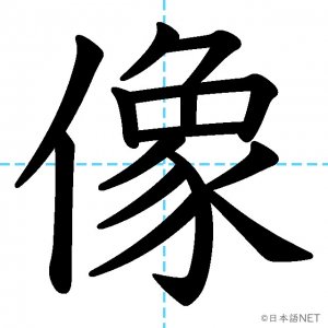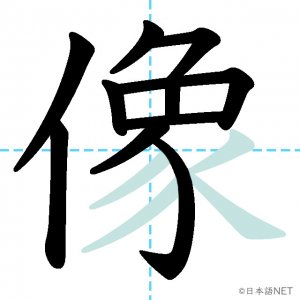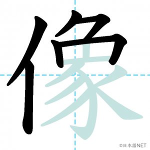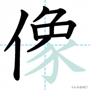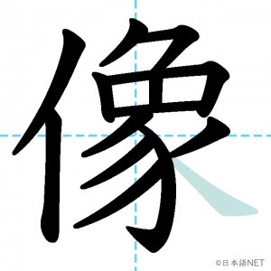 N2 漢字漢字【JLPT N2漢字】「像」の意味・読み方・書き順 2021年3月9日 2021年3月9日 Facebook postはてブLINEPocketFeedlyfa-exclamation-triangle記事内に商品プロモーションが含まれる場合があります目次1 「像」の漢字について2 「像」の書き順3 「像」を含む言葉4 関連書籍「像」の漢字について読み方音読み-訓読みぞう意味statue / image / picture部首人(亻) 画数14JLPTレベルN2 「像」の書き順1画目2画目3画目4画目5画目6画目7画目8画目9画10画目11画目12画目13画目14画目「像」を含む言葉想像(そうぞう)現像(げんぞう)画像(がぞう)映像(えいぞう)仏像(ぶつぞう)銅像(どうぞう)残像(ざんぞう)肖像(しょうぞう)関連書籍 日本語総まとめ N2 漢字 [英語・ベトナム語版] Nihongo Soumatome N2 Kanji (English/Vietnamese Edition) Amazon 楽天市場 Yahooショッピング 新完全マスター漢字 日本語能力試験N2 Amazon 楽天市場 Yahooショッピング 日本語を学ぶ外国人のための これで覚える! 漢字字典2500ナツメ社 Amazon 楽天市場 Yahooショッピング Facebook postはてブLINEPocketFeedly