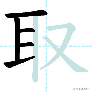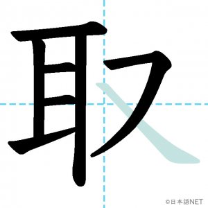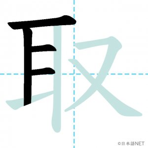 N2 漢字漢字【JLPT N2漢字】「取」の意味・読み方・書き順 2021年3月10日 2021年3月10日 Facebook postはてブLINEPocketFeedlyfa-exclamation-triangle記事内に商品プロモーションが含まれる場合があります目次1 「取」の漢字について2 「取」の書き順3 「取」を含む言葉4 関連書籍「取」の漢字について読み方音読みしゅ訓読みと-る意味to take / to fetch部首又画数8JLPTレベルN2 「取」の書き順1画目2画目3画目4画目5画目6画目7画目8画目「取」を含む言葉取る(とる)取り換える(とりかえる)受け取る(うけとる)取り扱う(とりあつかう)取り上げる(とりあげる)取得(しゅとく)取組(とりくみ)採取(さいしゅ)搾取(さくしゅ)下取り(したどり)取材(しゅざい)関連書籍 日本語総まとめ N2 漢字 [英語・ベトナム語版] Nihongo Soumatome N2 Kanji (English/Vietnamese Edition) Amazon 楽天市場 Yahooショッピング 新完全マスター漢字 日本語能力試験N2 Amazon 楽天市場 Yahooショッピング 日本語を学ぶ外国人のための これで覚える! 漢字字典2500ナツメ社 Amazon 楽天市場 Yahooショッピング Facebook postはてブLINEPocketFeedly