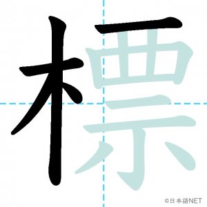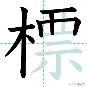 N2 漢字漢字【JLPT N2漢字】「標」の意味・読み方・書き順 2021年3月12日 2021年3月13日 Facebook postはてブLINEPocketFeedlyfa-exclamation-triangle記事内に商品プロモーションが含まれる場合があります目次1 「標」の漢字について2 「標」の書き順3 「標」を含む言葉4 関連書籍「標」の漢字について読み方音読みひょう訓読み-意味mark / sign / symbol部首木画数15JLPTレベルN2 「標」の書き順1画目2画目3画目4画目5画目6画目7画目8画目9画目10画目11画目12画目13画目14画目15画目「標」を含む言葉目標(もくひょう)標準(ひょうじゅん)標識(ひょうしき)標本(ひょうほん)商標(しょうひょう)座標(ざぎょう)標語(ひょうご)関連書籍 日本語総まとめ N2 漢字 [英語・ベトナム語版] Nihongo Soumatome N2 Kanji (English/Vietnamese Edition) Amazon 楽天市場 Yahooショッピング 新完全マスター漢字 日本語能力試験N2 Amazon 楽天市場 Yahooショッピング 日本語を学ぶ外国人のための これで覚える! 漢字字典2500ナツメ社 Amazon 楽天市場 Yahooショッピング Facebook postはてブLINEPocketFeedly