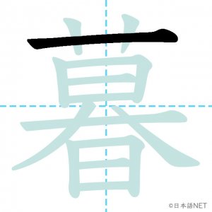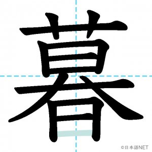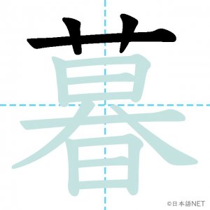 N2 漢字漢字【JLPT N2漢字】「暮」の意味・読み方・書き順 2021年3月19日 2021年3月19日 Facebook postはてブLINEPocketFeedlyfa-exclamation-triangle記事内に商品プロモーションが含まれる場合があります目次1 「暮」の漢字について2 「暮」の書き順3 「暮」を含む言葉4 関連書籍「暮」の漢字について読み方音読みぼ訓読みく-れる く-らす意味livelihood / to spend time部首日画数14JLPTレベルN2 「暮」の書き順1画目2画目3画目4画目5画目6画目7画目8画目9画10画目 11画目12画目13画目14画目「暮」を含む言葉暮らし(くらし)暮れる(くれる)夕暮れ(ゆうぐれ)お歳暮(おせいぼ)野暮(やぼ)関連書籍 日本語総まとめ N2 漢字 [英語・ベトナム語版] Nihongo Soumatome N2 Kanji (English/Vietnamese Edition) Amazon 楽天市場 Yahooショッピング 新完全マスター漢字 日本語能力試験N2 Amazon 楽天市場 Yahooショッピング 日本語を学ぶ外国人のための これで覚える! 漢字字典2500ナツメ社 Amazon 楽天市場 Yahooショッピング Facebook postはてブLINEPocketFeedly