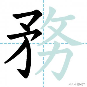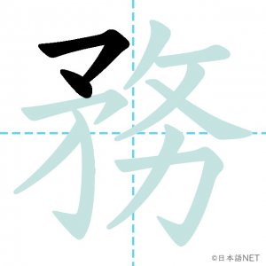 N2 漢字漢字【JLPT N2漢字】「務」の意味・読み方・書き順 2021年3月21日 2021年3月21日 Facebook postはてブLINEPocketFeedlyfa-exclamation-triangle記事内に商品プロモーションが含まれる場合があります目次1 「務」の漢字について2 「務」の書き順3 「務」を含む言葉4 関連書籍「務」の漢字について読み方音読みむ訓読みつと-める つと-まる意味task / duty部首力画数11JLPTレベルN2 「務」の書き順1画目2画目3画目4画目5画目6画目7画目8画目9画10画目11画目「務」を含む言葉勤務(きんむ)任務(にんむ)責務(せきむ)事務(じむ)職務(しょくむ)務める(つとめる)公務員(こうむいん)乗務員(じょうむいん)税務署(ぜいむしょ)刑務所(けいむしょ)関連書籍 日本語総まとめ N2 漢字 [英語・ベトナム語版] Nihongo Soumatome N2 Kanji (English/Vietnamese Edition) Amazon 楽天市場 Yahooショッピング 新完全マスター漢字 日本語能力試験N2 Amazon 楽天市場 Yahooショッピング 日本語を学ぶ外国人のための これで覚える! 漢字字典2500ナツメ社 Amazon 楽天市場 Yahooショッピング Facebook postはてブLINEPocketFeedly