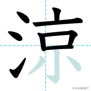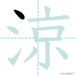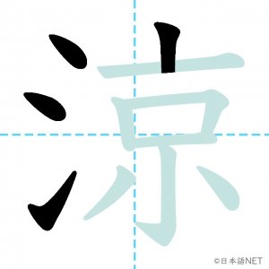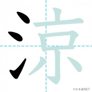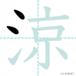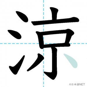 N2 漢字漢字【JLPT N2漢字】「涼」の意味・読み方・書き順 2021年3月25日 2024年7月9日 Facebook postはてブLINEPocketFeedlyfa-exclamation-triangle記事内に商品プロモーションが含まれる場合があります目次1 「涼」の漢字について2 「涼」の書き順3 「涼」を含む言葉4 関連書籍「涼」の漢字について読み方音読みりょう訓読みすず-しい すず-む意味cool部首水(氵,氺) 画数11JLPTレベルN2 「涼」の書き順1画目2画目3画 4画目5画目6画目7画目8画目9画10画目11画目「涼」を含む言葉涼しい (すずしい)涼む(すずむ)清涼(せいりょう)涼風(りょうふう)涼み処(すずみどころ)関連書籍 日本語総まとめ N2 漢字 [英語・ベトナム語版] Nihongo Soumatome N2 Kanji (English/Vietnamese Edition) Amazon 楽天市場 Yahooショッピング 新完全マスター漢字 日本語能力試験N2 Amazon 楽天市場 Yahooショッピング 日本語を学ぶ外国人のための これで覚える! 漢字字典2500ナツメ社 Amazon 楽天市場 Yahooショッピング Facebook postはてブLINEPocketFeedly
