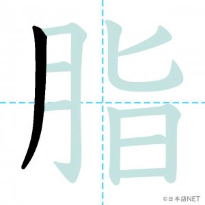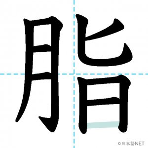 N2 漢字漢字【JLPT N2漢字】「脂」の意味・読み方・書き順 2021年3月29日 2021年3月29日 Facebook postはてブLINEPocketFeedlyfa-exclamation-triangle記事内に商品プロモーションが含まれる場合があります目次1 「脂」の漢字について2 「脂」の書き順3 「脂」を含む言葉4 関連書籍「脂」の漢字について読み方音読みし訓読みあぶら意味fat / grease / lard部首肉(⺼)画数10JLPTレベルN2 「脂」の書き順1画目2画目3画目4画目5画目6画目7画目8画目9画目10画目「脂」を含む言葉脂(あぶら)脂肪(しぼう)樹脂(じゅし)油脂(ゆし)背脂(せあぶら)関連書籍 日本語総まとめ N2 漢字 [英語・ベトナム語版] Nihongo Soumatome N2 Kanji (English/Vietnamese Edition) Amazon 楽天市場 Yahooショッピング 新完全マスター漢字 日本語能力試験N2 Amazon 楽天市場 Yahooショッピング 日本語を学ぶ外国人のための これで覚える! 漢字字典2500ナツメ社 Amazon 楽天市場 Yahooショッピング Facebook postはてブLINEPocketFeedly