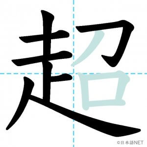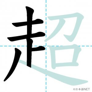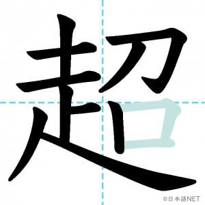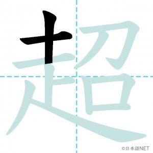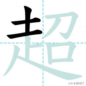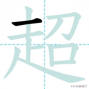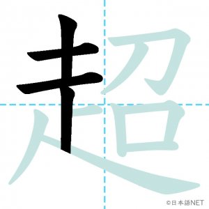 N2 漢字漢字【JLPT N2漢字】「超」の意味・読み方・書き順 2021年4月5日 2021年4月5日 Facebook postはてブLINEPocketFeedlyfa-exclamation-triangle記事内に商品プロモーションが含まれる場合があります目次1 「超」の漢字について2 「超」の書き順3 「超」を含む言葉4 関連書籍「超」の漢字について読み方音読みちょう訓読みこ-える こ-す意味super-/ ultra- / to transcend部首走画数12JLPTレベルN2 「超」の書き順1画目2画目3画目4画目5画目6画目7画目8画目9画目10画目11画目12画目「超」を含む言葉超える(こえる)超過(ちょうか)超絶(ちょうぜつ)超越(ちょうえつ)超人(ちょうじん)関連書籍 日本語総まとめ N2 漢字 [英語・ベトナム語版] Nihongo Soumatome N2 Kanji (English/Vietnamese Edition) Amazon 楽天市場 Yahooショッピング 新完全マスター漢字 日本語能力試験N2 Amazon 楽天市場 Yahooショッピング 日本語を学ぶ外国人のための これで覚える! 漢字字典2500ナツメ社 Amazon 楽天市場 Yahooショッピング Facebook postはてブLINEPocketFeedly