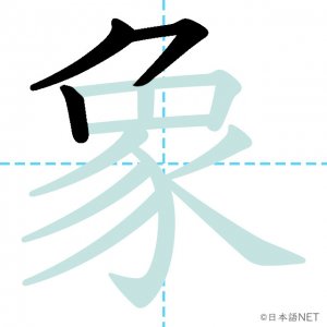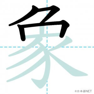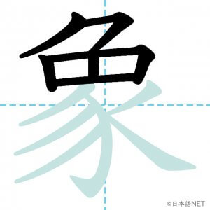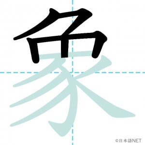 N2 漢字漢字【JLPT N2漢字】「象」の意味・読み方・書き順 2021年4月6日 2021年4月6日 Facebook postはてブLINEPocketFeedlyfa-exclamation-triangle記事内に商品プロモーションが含まれる場合があります目次1 「象」の漢字について2 「象」の書き順3 「象」を含む言葉4 関連書籍「象」の漢字について読み方音読みしょう ぞう訓読み-意味elephant / image / pattern部首豕画数12JLPTレベルN2 「象」の書き順1画目2画目3画目4画目5画目6画目7画目8画目9画目10画目11画目12画目「象」を含む言葉象(ぞう)印象(いんしょう)現象(げんしょう)対象(たいしょう)象徴(しょうちょう)抽象(ちゅうしょう)気象(きしょう)関連書籍 日本語総まとめ N2 漢字 [英語・ベトナム語版] Nihongo Soumatome N2 Kanji (English/Vietnamese Edition) Amazon 楽天市場 Yahooショッピング 新完全マスター漢字 日本語能力試験N2 Amazon 楽天市場 Yahooショッピング 日本語を学ぶ外国人のための これで覚える! 漢字字典2500ナツメ社 Amazon 楽天市場 Yahooショッピング Facebook postはてブLINEPocketFeedly