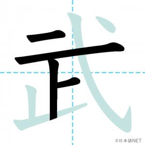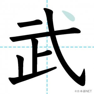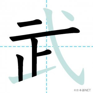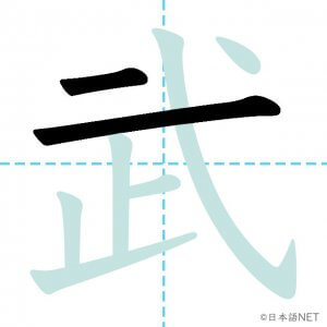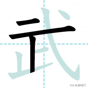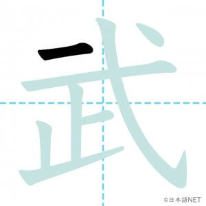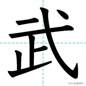 N2 漢字漢字【JLPT N2漢字】「武」の意味・読み方・書き順 2021年4月9日 2021年4月9日 Facebook postはてブLINEPocketFeedlyfa-exclamation-triangle記事内に商品プロモーションが含まれる場合があります目次1 「武」の漢字について2 「武」の書き順3 「武」を含む言葉4 関連書籍「武」の漢字について読み方音読みぶ む訓読み-意味warrior / military部首止画数8JLPTレベルN2 「武」の書き順1画目2画目3画目4画目5画目6画目7画目8画目「武」を含む言葉武器(ぶき)武装(ぶそう)武士(ぶし)武力(ぶりょく)武術(ぶじゅつ)武者(むしゃ)関連書籍 日本語総まとめ N2 漢字 [英語・ベトナム語版] Nihongo Soumatome N2 Kanji (English/Vietnamese Edition) Amazon 楽天市場 Yahooショッピング 新完全マスター漢字 日本語能力試験N2 Amazon 楽天市場 Yahooショッピング 日本語を学ぶ外国人のための これで覚える! 漢字字典2500ナツメ社 Amazon 楽天市場 Yahooショッピング Facebook postはてブLINEPocketFeedly