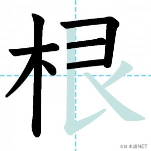 N2 漢字漢字【JLPT N2漢字】「根」の意味・読み方・書き順 2021年4月10日 2021年4月10日 Facebook postはてブLINEPocketFeedlyfa-exclamation-triangle記事内に商品プロモーションが含まれる場合があります目次1 「根」の漢字について2 「根」の書き順3 「根」を含む言葉4 関連書籍「根」の漢字について読み方音読みこん訓読みね意味root部首木画数10JLPTレベルN2 「根」の書き順1画目2画目3画目4画目5画目6画目7画目8画目9画目10画目「根」を含む言葉根(ね)屋根(やね)根元(ねもと)垣根(かきね)根っこ(ねっこ)根拠(こんきょ)根気(こんき)関連書籍 日本語総まとめ N2 漢字 [英語・ベトナム語版] Nihongo Soumatome N2 Kanji (English/Vietnamese Edition) Amazon 楽天市場 Yahooショッピング 新完全マスター漢字 日本語能力試験N2 Amazon 楽天市場 Yahooショッピング 日本語を学ぶ外国人のための これで覚える! 漢字字典2500ナツメ社 Amazon 楽天市場 Yahooショッピング Facebook postはてブLINEPocketFeedly