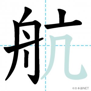 N2 漢字漢字【JLPT N2漢字】「航」の意味・読み方・書き順 2021年4月12日 2021年4月12日 Facebook postはてブLINEPocketFeedlyfa-exclamation-triangle記事内に商品プロモーションが含まれる場合があります目次1 「航」の漢字について2 「航」の書き順3 「航」を含む言葉4 関連書籍「航」の漢字について読み方音読みこう訓読み-意味sail / cruise / to navigate 部首舟画数10JLPTレベルN2 「航」の書き順1画目2画目3画目4画目5画目6画目7画目8画目9画目10画目「航」を含む言葉航海(こうかい)航空(こうくう)欠航(けっこう)難航(なんこう)関連書籍 日本語総まとめ N2 漢字 [英語・ベトナム語版] Nihongo Soumatome N2 Kanji (English/Vietnamese Edition) Amazon 楽天市場 Yahooショッピング 新完全マスター漢字 日本語能力試験N2 Amazon 楽天市場 Yahooショッピング 日本語を学ぶ外国人のための これで覚える! 漢字字典2500ナツメ社 Amazon 楽天市場 Yahooショッピング Facebook postはてブLINEPocketFeedly