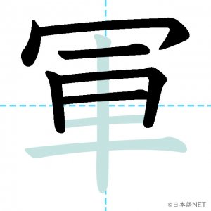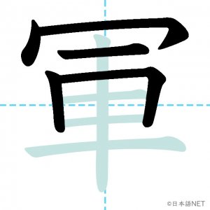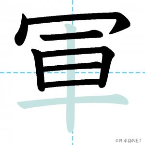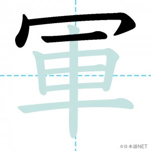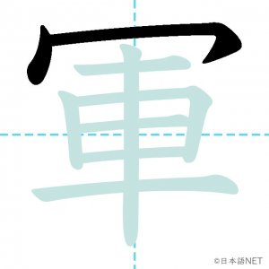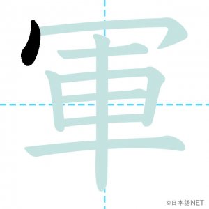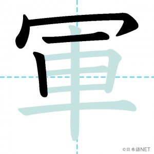N2 漢字漢字【JLPT N2漢字】「軍」の意味・読み方・書き順 2021年4月13日 2021年4月13日 Facebook postはてブLINEPocketFeedlyfa-exclamation-triangle記事内に商品プロモーションが含まれる場合があります目次1 「軍」の漢字について2 「軍」の書き順3 「軍」を含む言葉4 関連書籍「軍」の漢字について読み方音読みぐん訓読み-意味army部首車画数9JLPTレベルN2 「軍」の書き順1画目2画目3画目4画目5画目6画目7画目8画目9画目「軍」を含む言葉軍(ぐん)軍隊(ぐんたい)陸軍(りくぐん)海軍(かいぐん)軍事(ぐんじ)軍服(ぐんぷく)軍艦(ぐんかん)関連書籍 日本語総まとめ N2 漢字 [英語・ベトナム語版] Nihongo Soumatome N2 Kanji (English/Vietnamese Edition) Amazon 楽天市場 Yahooショッピング 新完全マスター漢字 日本語能力試験N2 Amazon 楽天市場 Yahooショッピング 日本語を学ぶ外国人のための これで覚える! 漢字字典2500ナツメ社 Amazon 楽天市場 Yahooショッピング Facebook postはてブLINEPocketFeedly
